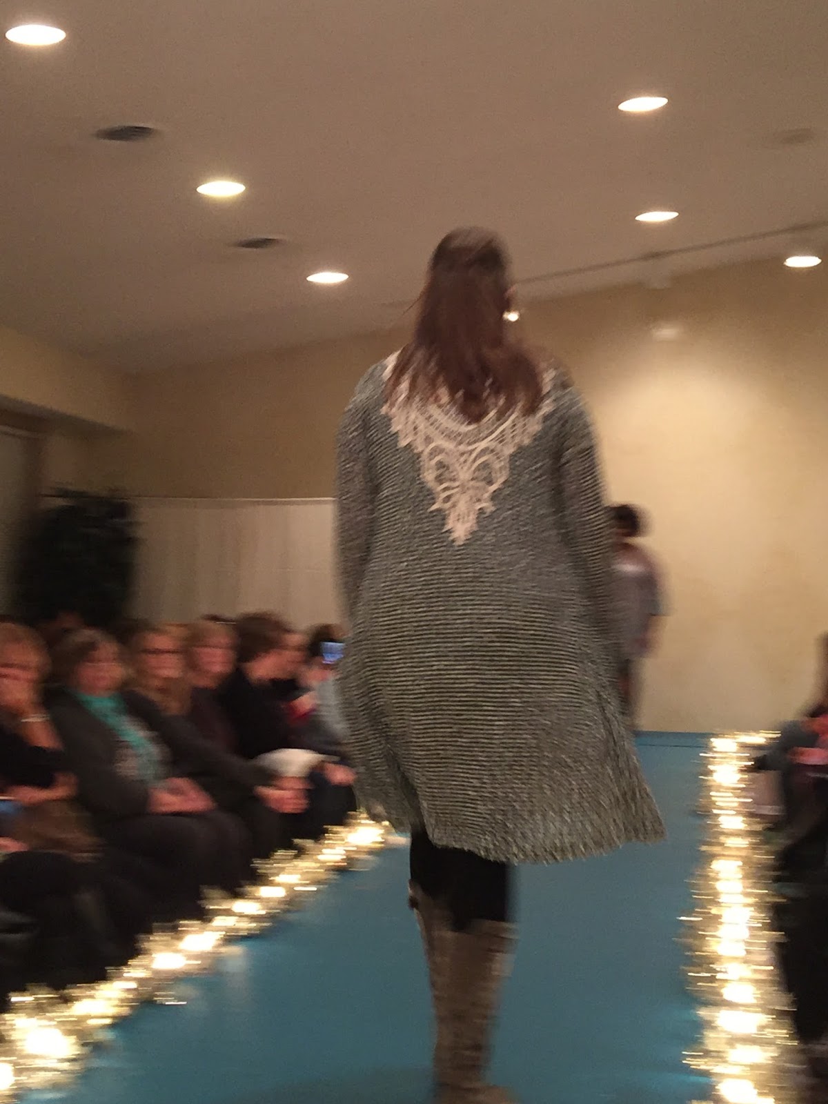Silly me did not get pictures of all of the clothes for sale inside the lodge. If you own a dress shop, this was one heck of a way to make a bunch of money. The doors opened two hours before the style show. And they had racks and racks of clothes for sale. You could shop before the style show, and the deal was Buy one, get the second one half price!